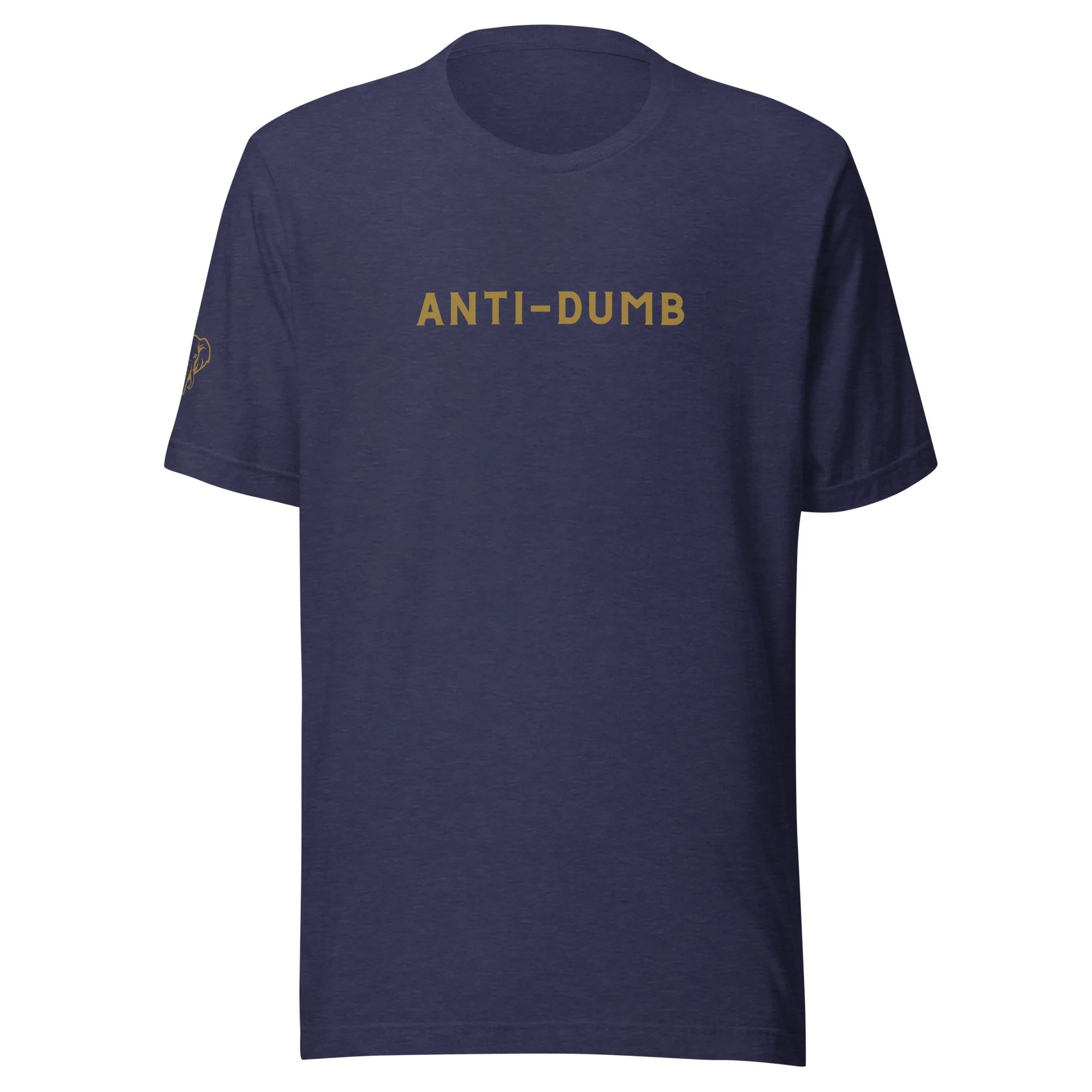 Image 1 of 24 Image 2 of 24 Image 3 of 24 Image 4 of 24 Image 5 of 24 Image 6 of 24 Image 7 of 24 Image 8 of 24 Image 9 of 24 Image 10 of 24 Image 11 of 24 Image 12 of 24 Image 13 of 24 Image 14 of 24 Image 15 of 24 Image 16 of 24 Image 17 of 24 Image 18 of 24 Image 19 of 24 Image 20 of 24 Image 21 of 24 Image 22 of 24 Image 23 of 24 Image 24 of 24 Anti-Dumb Tee $30.00 • 100% combed and ring-spun cotton (Heather colors contain polyester) • Fabric weight: 4.2 oz./yd.² (142 g/m²) • Pre-shrunk fabric • Side-seamed construction • Shoulder-to-shoulder taping Color: Select Color Black Heather Dark Grey Heather Midnight Navy Maroon Athletic Heather White Size: Select Size XS S M L XL 2XL 3XL 4XL 5XL Add To Cart Added! • 100% combed and ring-spun cotton (Heather colors contain polyester) • Fabric weight: 4.2 oz./yd.² (142 g/m²) • Pre-shrunk fabric • Side-seamed construction • Shoulder-to-shoulder taping
